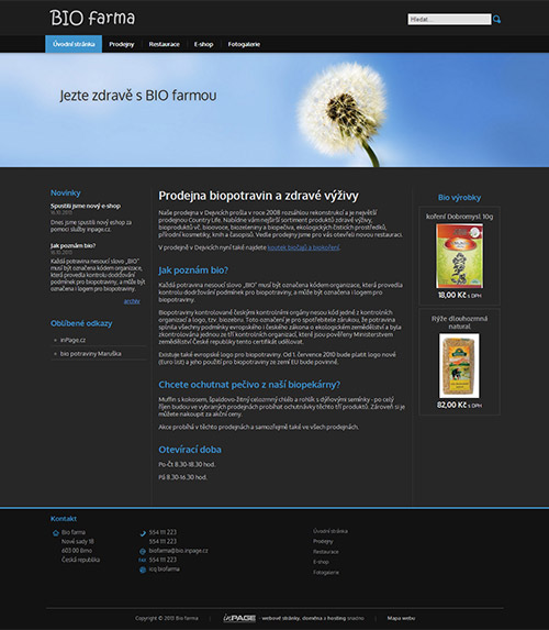 - Sekce Novinky (Aktuality) - s možností úpravy on-line s pomocí redakčního systému